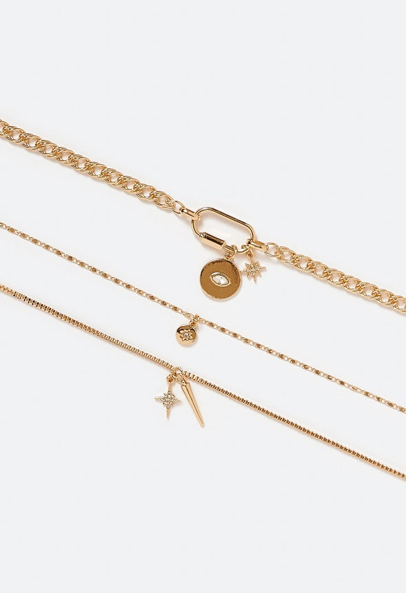 3-Rows Kate Necklace With Mix Charms And Carabiner Clasp