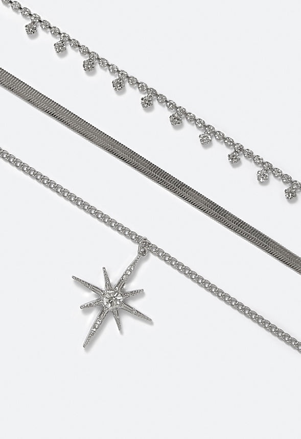 Style This 3 Row Celestial Motif And Glass Cupchain Necklace With Your Fave Outfit To Instantly Elevate Your Look. Extender chain: 3.0 Material : 50% Copper, 20% Steel, 20% Glass, 10% Zinc Length : 12.0 , 15.0 , 17.0 Dimensions : 12.0 – 20.0 Closure : Lobster clasp Imported