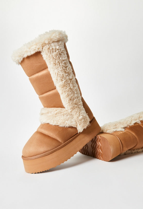 Material : Faux Suede Platform Height : 2.25 Outside Heel Height : 2.25 Shaft Height : 10.75 Closure : Pull On Imported