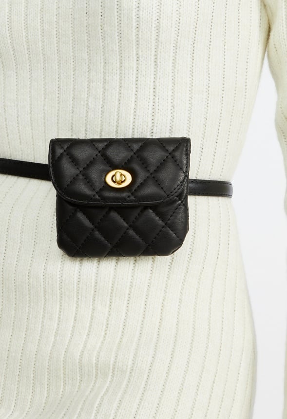 Your New Season Wardrobe Couldn't Be Complete Without This Stylish Quilted PU Belt Purse With Removable Purse. Material : 90% Faux Leather, 10% Zinc Dimensions : 39.0 Fit : 28.0 – 35.0 Size : fits US size 2-12 Closure : Buckle Imported