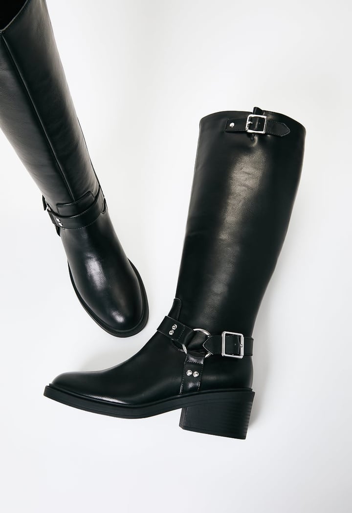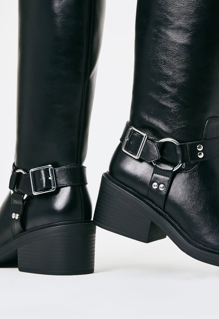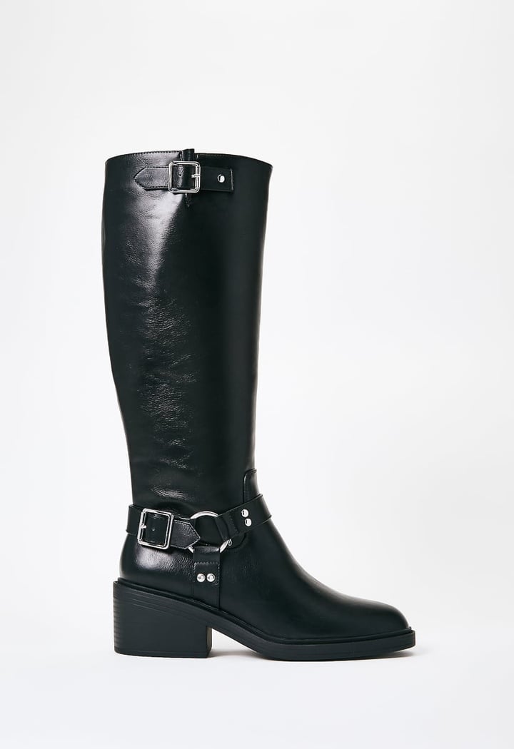 Material : Faux Leather Outside Heel Height : 2.25 Shaft Height : 14.25 Closure : Functional Side Zipper Imported