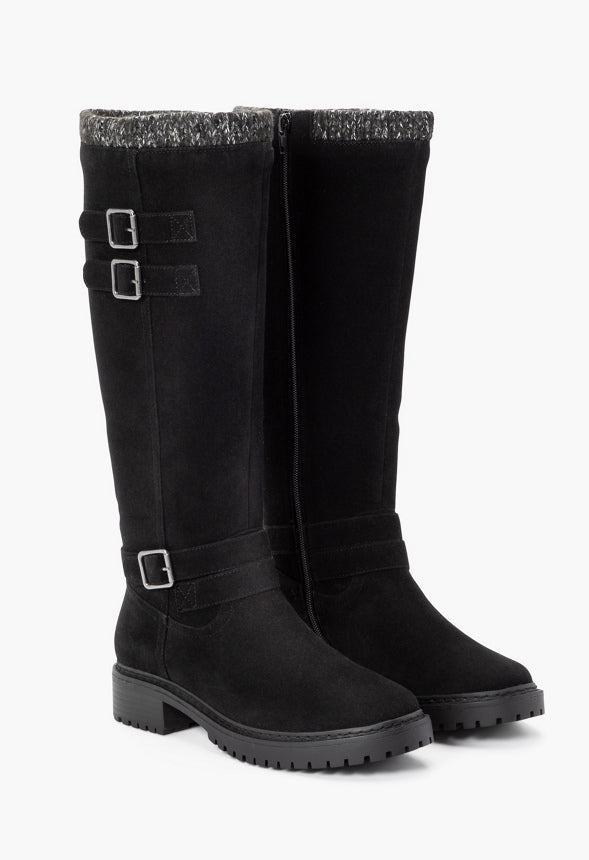 Material : Faux-Suede Platform Height : 1.75 Outside Heel Height : 1.5 Shaft Height : 15 Closure : Functional Side Zipper Imported
