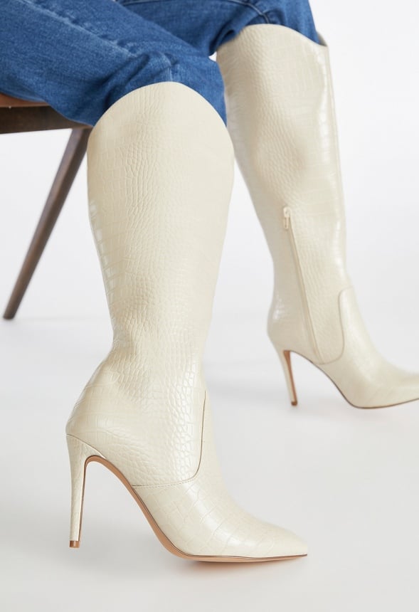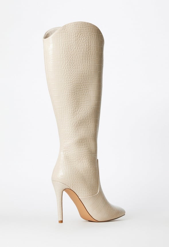 Material : Faux-Leather Outside Heel Height : 4 Closure : Functional Inside Zipper Shaft Height : 15.25 Imported