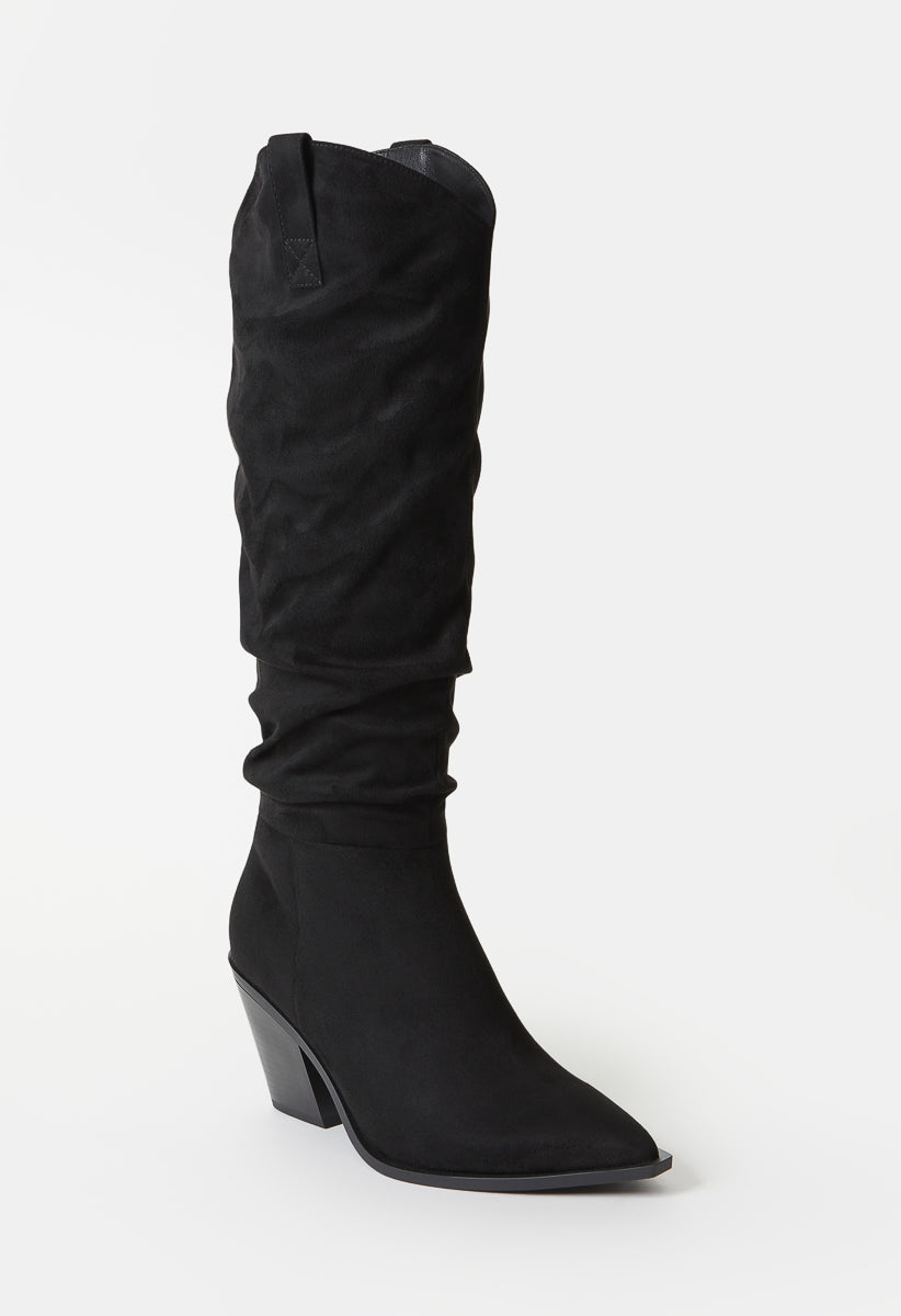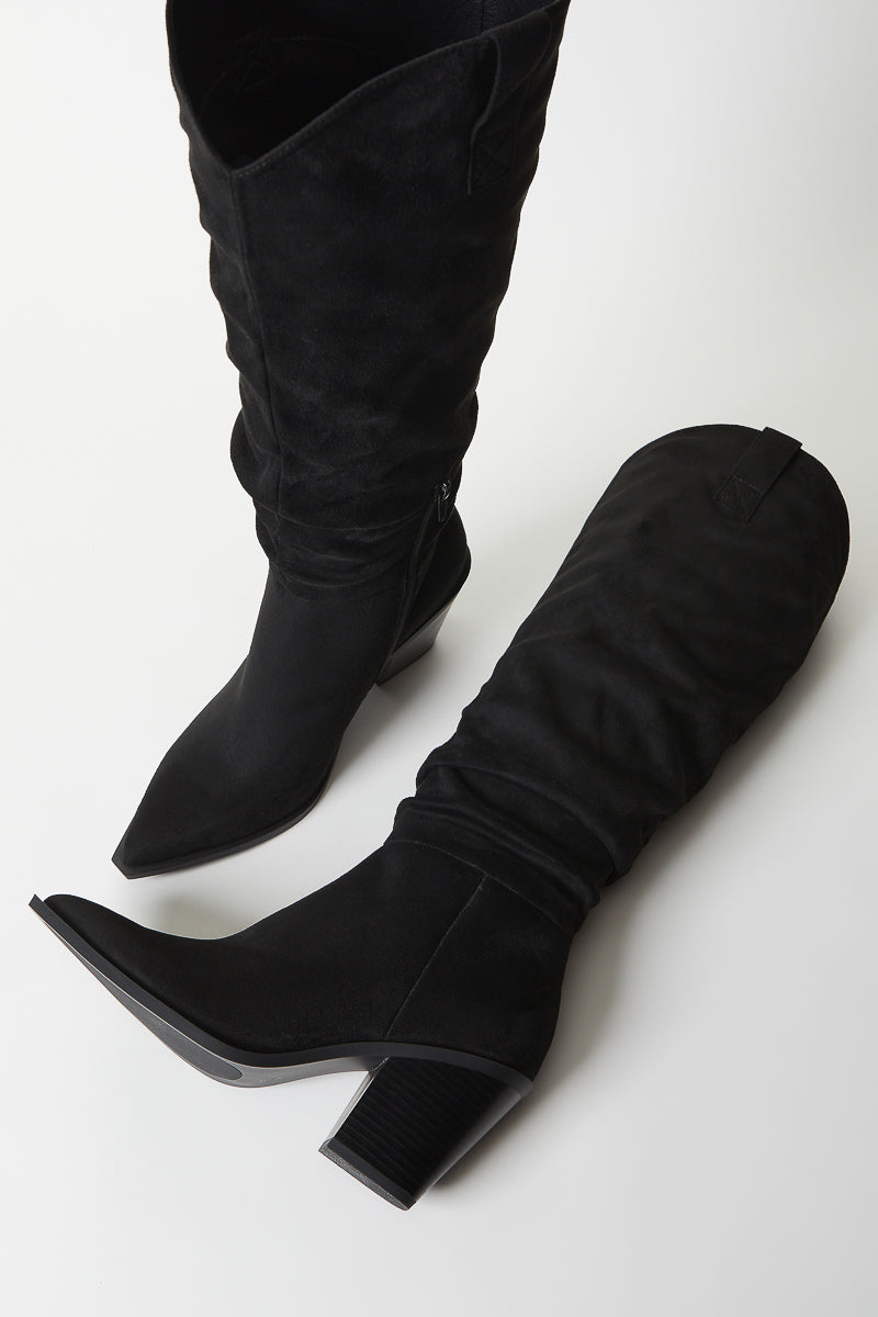 Material : Faux Suede Outside Heel Height : 3.25 Closure : Functional Inside Zipper Shaft Height : 13.75 Imported