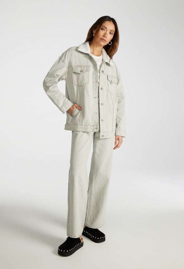 Button sleeve Sherpa Material : 90% Cotton, 10% Polyester Length : 27 1/2 Fabrication : Light Gray Wash Pockets : Chest and side pockets Closure : Button front closure Care : Machine wash. Please refer to care instruction label inside garment for further details. Imported