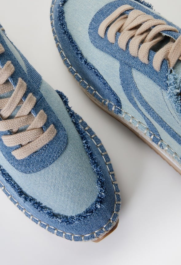 Material : Denim Outside Heel Height : 2.25 Closure : Adjustable Laces Imported