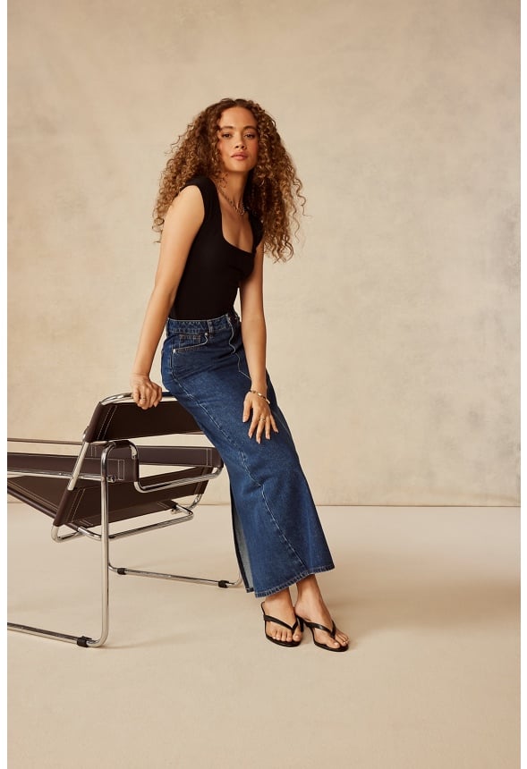 Square neck Material : 90% Cotton, 10% Elastane Length : 24 1/2 Care : Machine wash. Please refer to care instruction label inside garment for further details. Imported