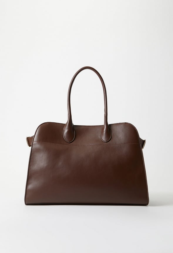 Material : Faux Leather Dimensions : 11.02 L x 7.48 W x 10.43 H Pockets : 1 interior pocket, 1 interior zip Drop : 6.3 Hardware : Gold Closure : Magnetic Button Imported