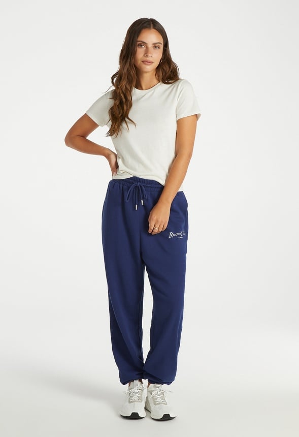 Tapered hem Racquet Club, Los Angeles on the front Drawstring waist Material : 100% Cotton Approx. Front Rise : 13 3/4 Approx. Inseam : 27 1/2 Approx. Leg Opening : 9.0 Pockets : Side pockets Care : Machine wash. Please refer to care instruction label inside garment for further details. Imported