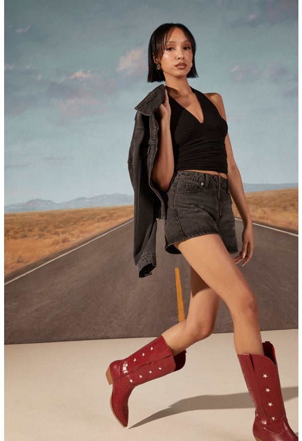 Material : 56% Cotton, 29% Polyester, 14% Rayon, 1% Other Fiber Approx. Front Rise : 11.75 Approx. Inseam : 3.0 Approx. Leg Opening : 25.5 Pockets : 5-Pocket Design Fabrication : Black Wash Closure : Zipper front Care : Machine wash. Please refer to care instruction label inside garment for further details. Imported