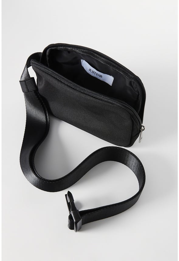 Material : Nylon Dimensions : 7.28 L x 1.97 W x 5.12 H Drop : 22.05 Hardware : Silver Closure : Zipper Imported